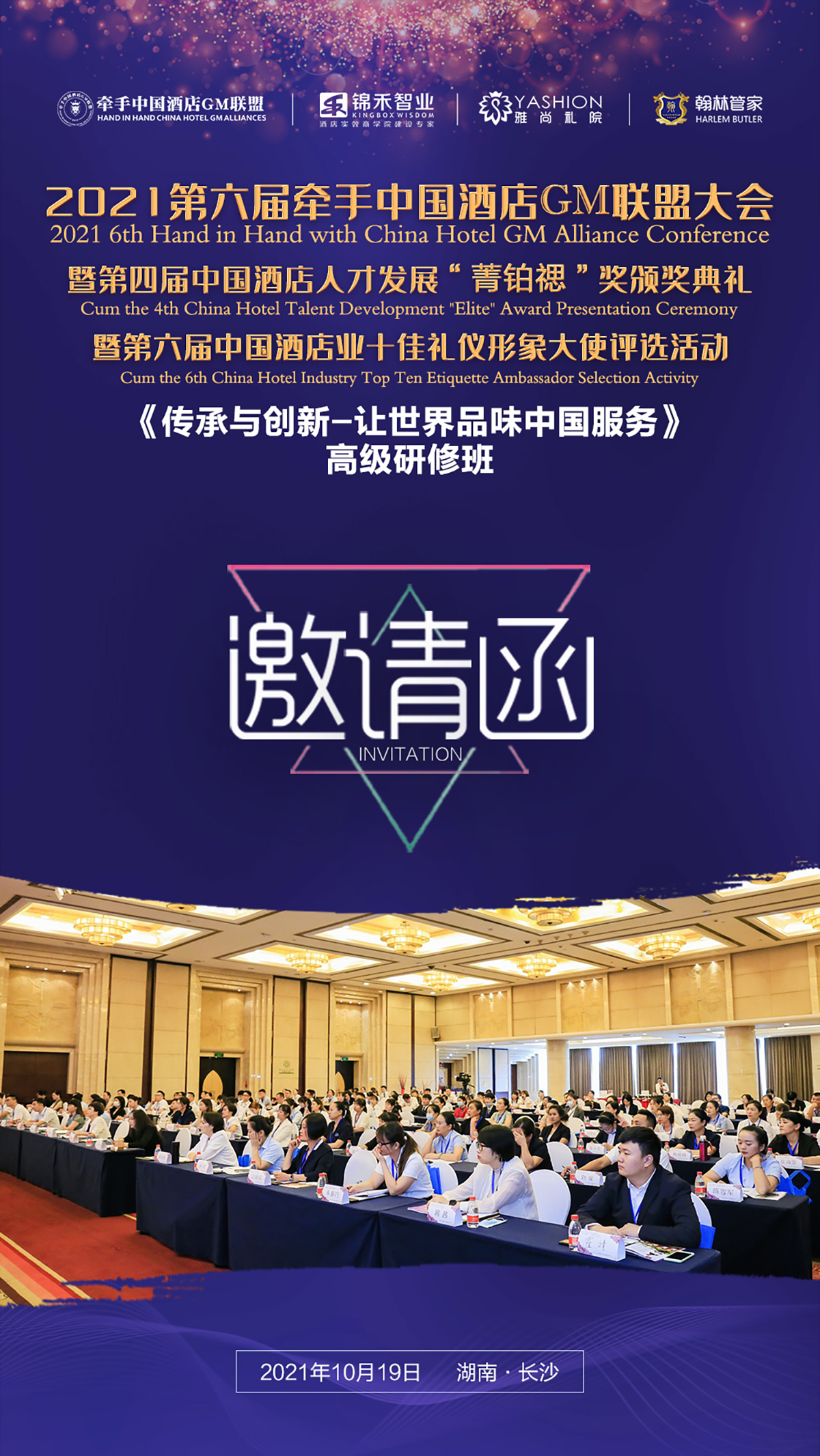 第六届牵手中国酒店总经理GM联盟论坛将在2021年10月19日在湖南长沙华天大酒店隆重召开,同时2021年度中国酒店人才发展“菁铂禗奖”评选活动、中国酒店业十佳礼仪形象大使选拔活动也将于2021年9月正式启动。